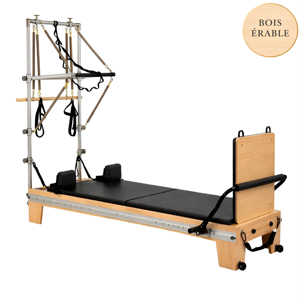 Cette structure Pilates en bois d’érable est conçue pour une pratique régulière à intensive, à domicile ou en studio privé.