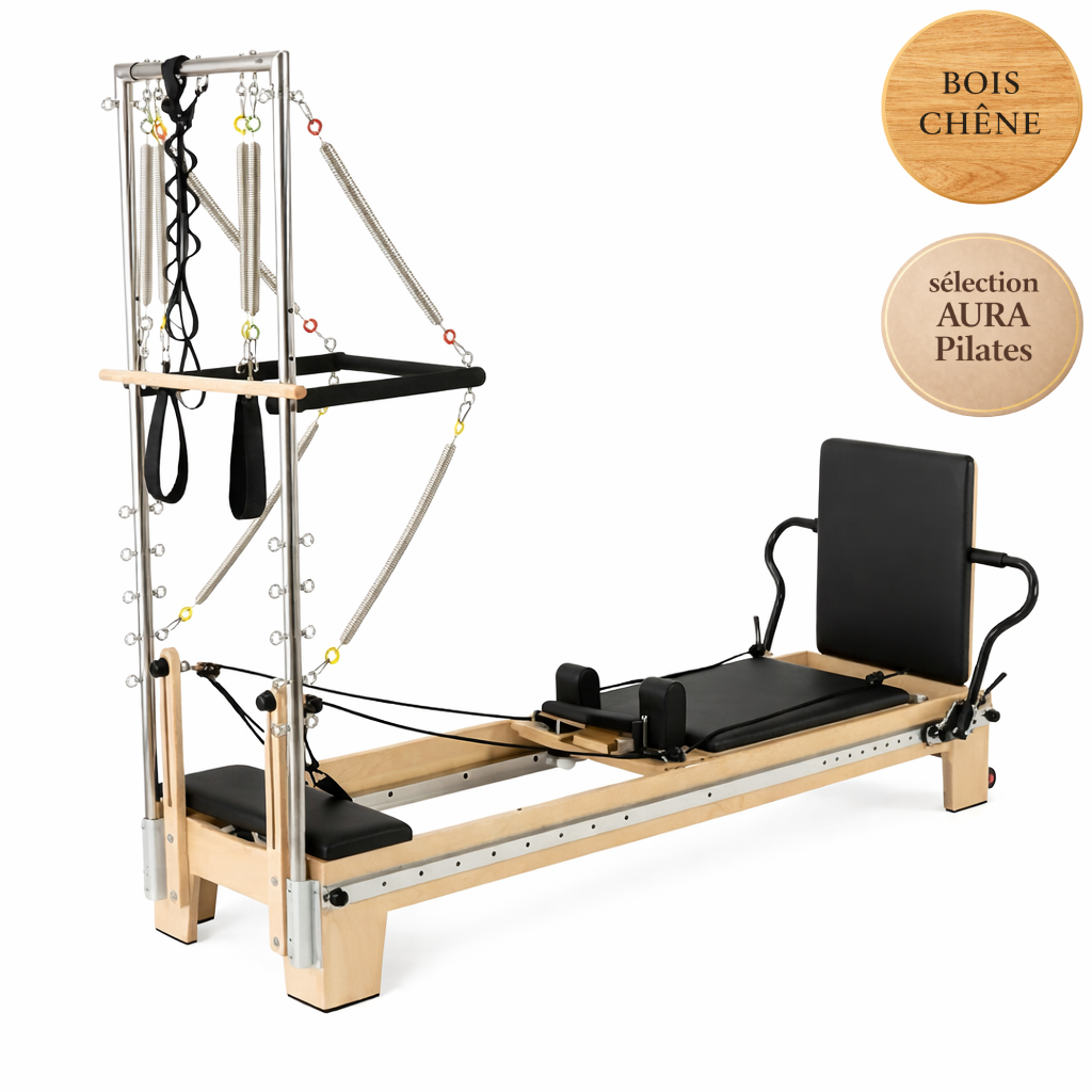 Ce Reformer Pilates avec tour offre une pratique complète et fluide, idéale pour le renforcement musculaire, la mobilité et le contrôle du mouvement.